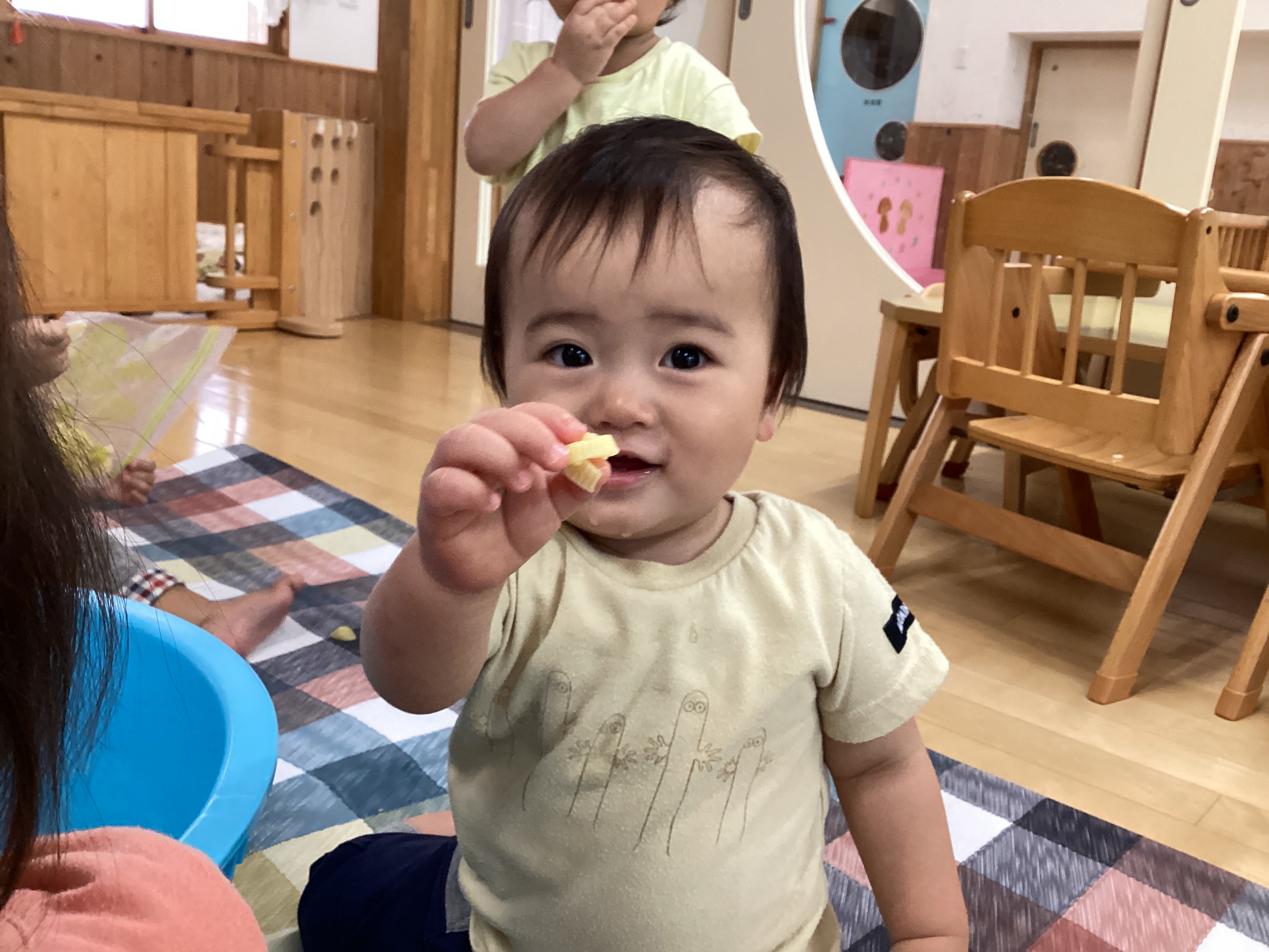 ぎゅっと握ってみたり落としてみたりとたくさん触れていくうちに、気持ち良い感触がやみつきになったようで、じっくりと遊びこんでいましたよ!