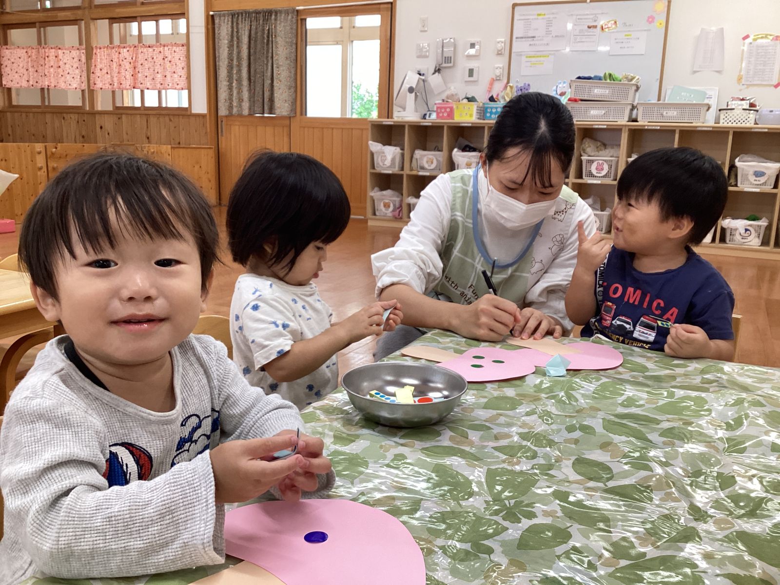 上手に剥がすことができるようになり、シールが貼れるとニコニコと嬉しそうな笑顔を見せてくれました。