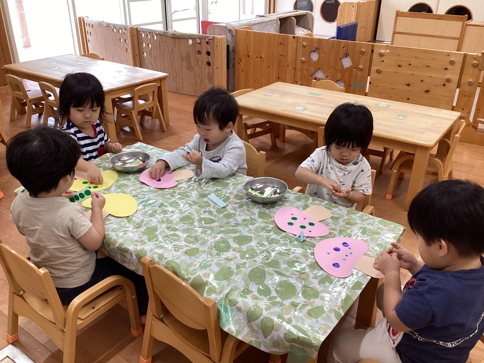 大きさの違うシールを使って台紙にペタペタと貼っていきました。