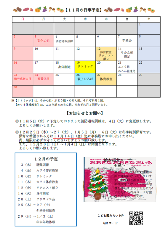 園だより令和7年11月