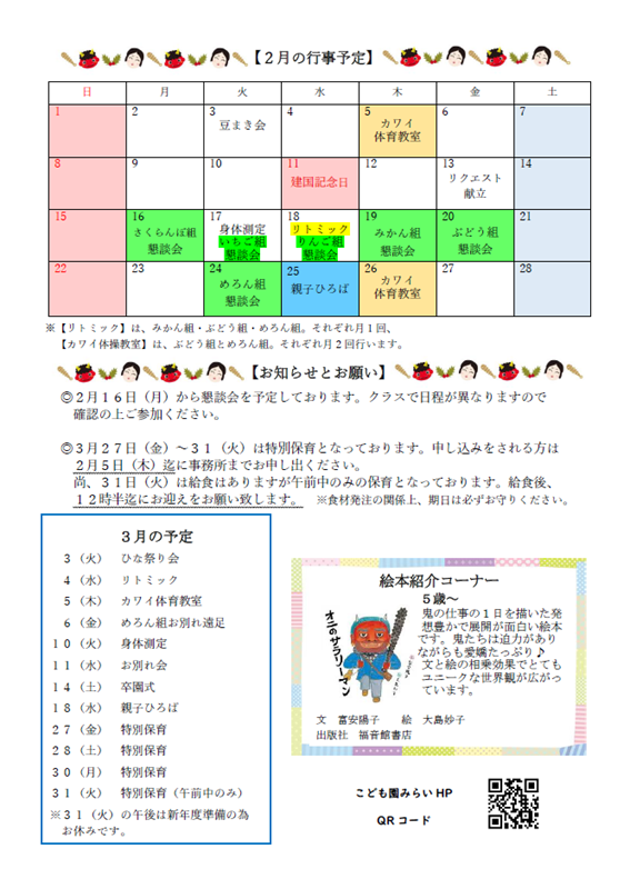 園だより令和8年2月