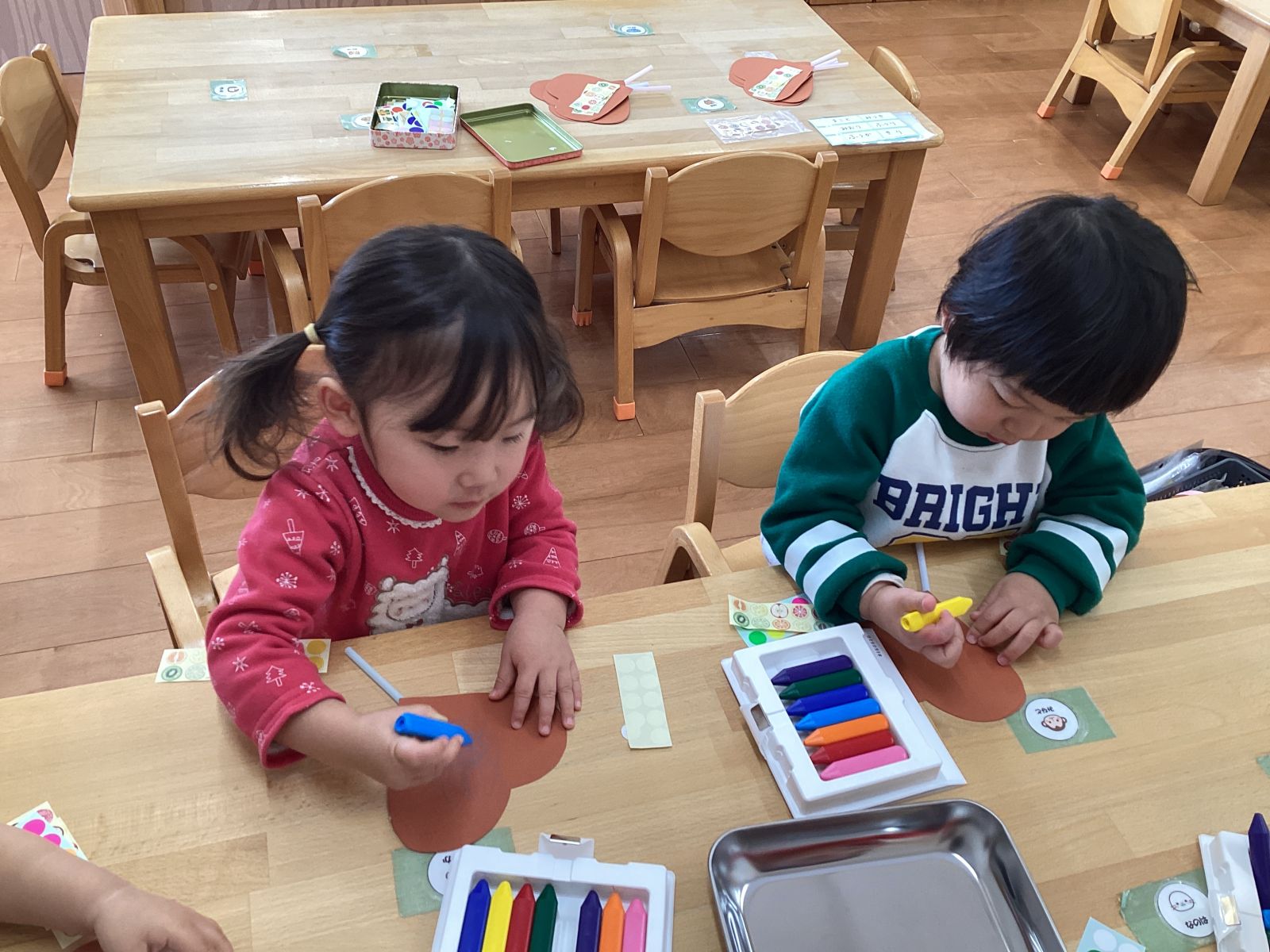 今週はバレンタインデーがあるので子どもたちとお菓子の製作をしました。ハートの形の画用紙の上に好きなシールを貼ったりなぐり描きをしました。出来上がったものを見て「おいしそう」「かわいいね」と子どもたちから自然と声が上がっていました。